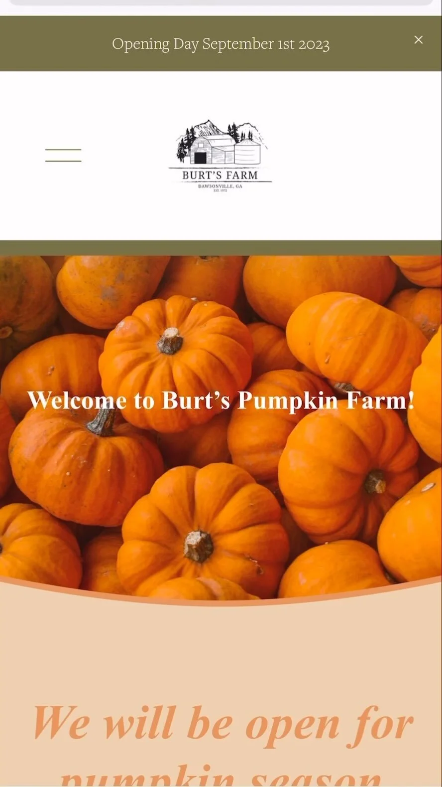 We’re back August 29th! 🍂 Mark your calendars and get ready for fall at Burt’s Pumpkin Farm!